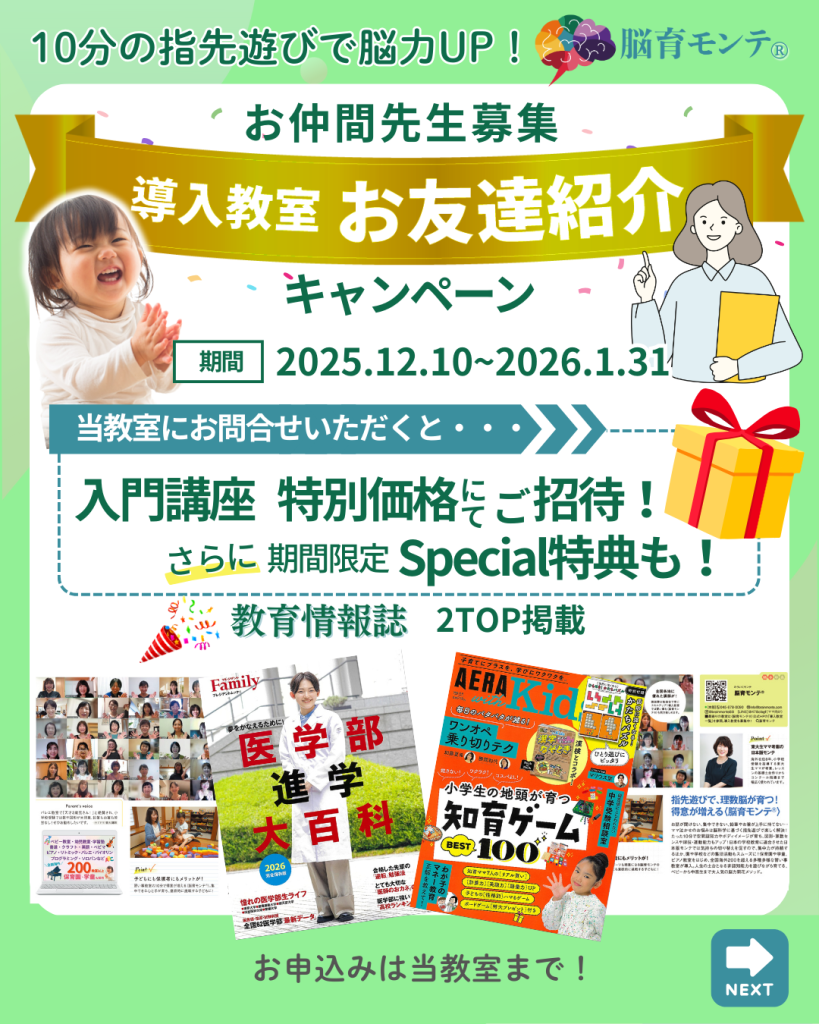 掲載された記念の企画で脳育モンテをプラスした無料体験レッスン